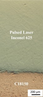 Various additive manufacturing processes are being evaluated to reduce the time and cost for fabrication of low volume, complex, and multifunctional assemblies. This study evaluated two direct energy deposition processes for the fabrication of large bi-metallic structures. The materials evaluated were Inconel 625 and copper alloy C18150, which are used in various high heat flux applications. Inconel was deposited onto the C18150 substrate using blown powder and wire-fed processes. Complete bonding was obtained in both processes and the resulting interfaces were evaluated using microscopy and indentation testing. Differences were observed in the interface region suggesting the kinetic energy of the blown powder process resulted in more residual stress at the interface, promoting recrystallization and enhanced diffusion. This created a broader interface in the blown powder specimens compared to a narrower mechanically mixed interface with the wire-fed process.