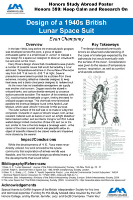 In the late 1940s, long before the eventual Apollo program was developed across the pond, a group of space enthusiasts gather in a small house in London to discuss a new design for a space suit designed to allow an individual to live and work on the moon. Harry Ross’s design shows that consideration was given to a number of possible issues that would be faced by a lunar astronaut. Temperature extremes on the surface of the moon vary from 248 °F at noon to -238 °F at night. Several precautions were taken to protect the explorers from these extremes, including reflective materials designed to keep heat away and a black chest piece designed to radiate it out. As the moon has no breathable atmosphere, air supply was another vital concern. Oxygen was to be stored in onboard tanks, and carbon dioxide removed by a special sodium peroxide scrubber. The reaction of this chemical with CO2 would produce breathable oxygen, limiting the need for onboard oxygen storage. This chemical removal method parallels the eventual designs found in the Apollo Lunar Module, which used Lithium Hydroxide for this purpose. The outer surface of the suit was to be made of a layered composite. Outwards in layers of closely woven cloth, a heat resistant material such as kapok or wool, an airtight sheath of fabric backed rubber, and an interior lining for comfort. A dual walled design limited conduction of heat into and out of the suit, similar to how a thermos keeps a beverage warm. In the center of the chest a small airlock was placed to allow an object of scientific interest to be placed inside and inspected more closely by the wearer.