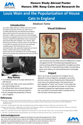 Louis Wain (1860-1939) was a British artist who changed the public's perspective of house cats. Wain was an incredibly talented artist who attended the prestigious West London School of Art and went into work as an illustrator. In 1884, he married a woman named Elizabeth Richardson and together they had a house cat named Peter. However, Elizabeth developed breast cancer and passed away shortly after their wedding. In her sickness, Wain drew pictures of Peter to raise her spirits. He used Peter as a muse after her passing, and his art of cats quickly got incredibly popular. Wain illustrated his cats in an anthropomorphic style, giving them large eyes and human clothes. In Wain’s later years, his health quickly deteriorated. He was committed to a mental hospital when he was 63 years old and lived out the rest of his life in various hospitals.