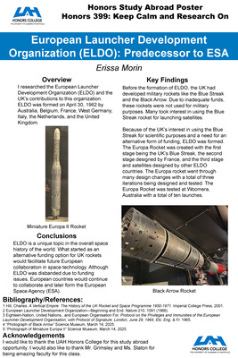 I researched the European Launcher Development Organization (ELDO) and the UK’s contributions to this organization. ELDO was formed on April 30, 1962 by Australia, Belgium, France, West Germany, Italy, the Netherlands, and the United Kingdom.