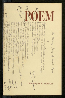 The Huntsville Literary Association was founded in 1967 to provide a community for writers, readers, and artists through workshops, readings, and educational programs. One of their key contributions is the literary magazine titled POEM which showcases original writings from both established and emerging writers. This issue features the poems of various writers.