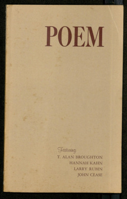 The Huntsville Literary Association was founded in 1967 to provide a community for writers, readers, and artists through workshops, readings, and educational programs. One of their key contributions is the literary magazine titled POEM which showcases original writings from both established and emerging writers. This issue highlights the work of Hannah Kahn, Larry Rubin, T. Alan Broughton.